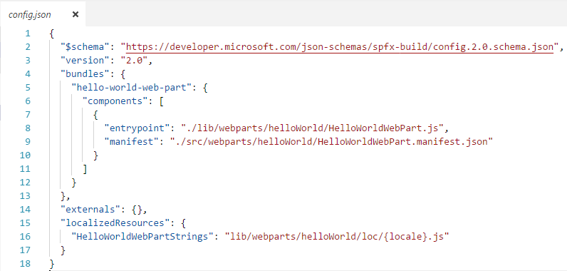 The configuration file contains the bundling information, the components used in the solution and entry point of the solution.