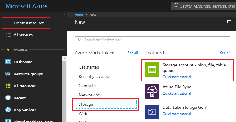 Click Storage account - blob, file, table, queue.