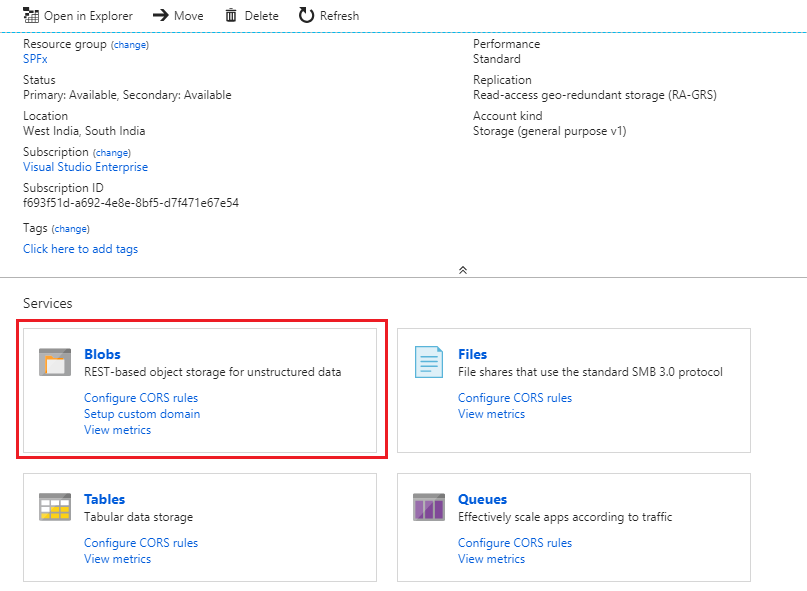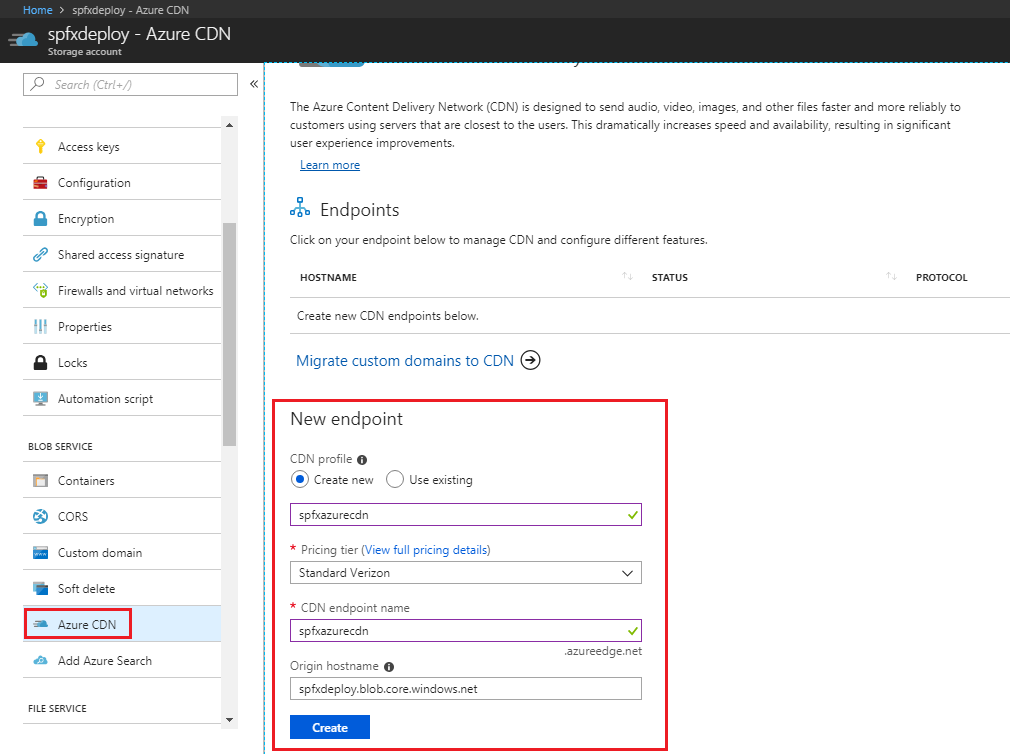 Under BLOB Service, select Azure CDN.