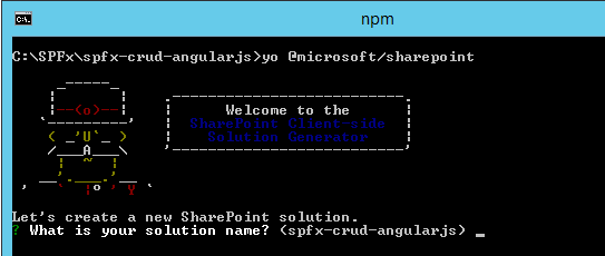 - Solution Name: Hit enter to have default name (spfx-crud-angularjs in this case) or type in any other name for your solution.
