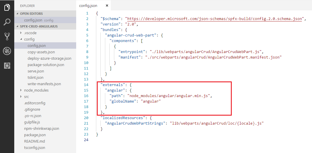 define([], function() { return { "PropertyPaneDescription": "Description", "BasicGroupName": "Group Name", "ListNameFieldLabel": "List Name" } }); - Open main webpart file (AngularCrudWebPart.ts) under “\src\webparts\angularCrud” folder.