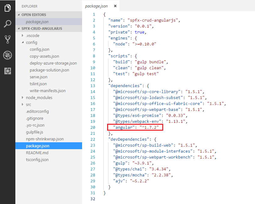 Open package.json and verify Angular dependency is listed.