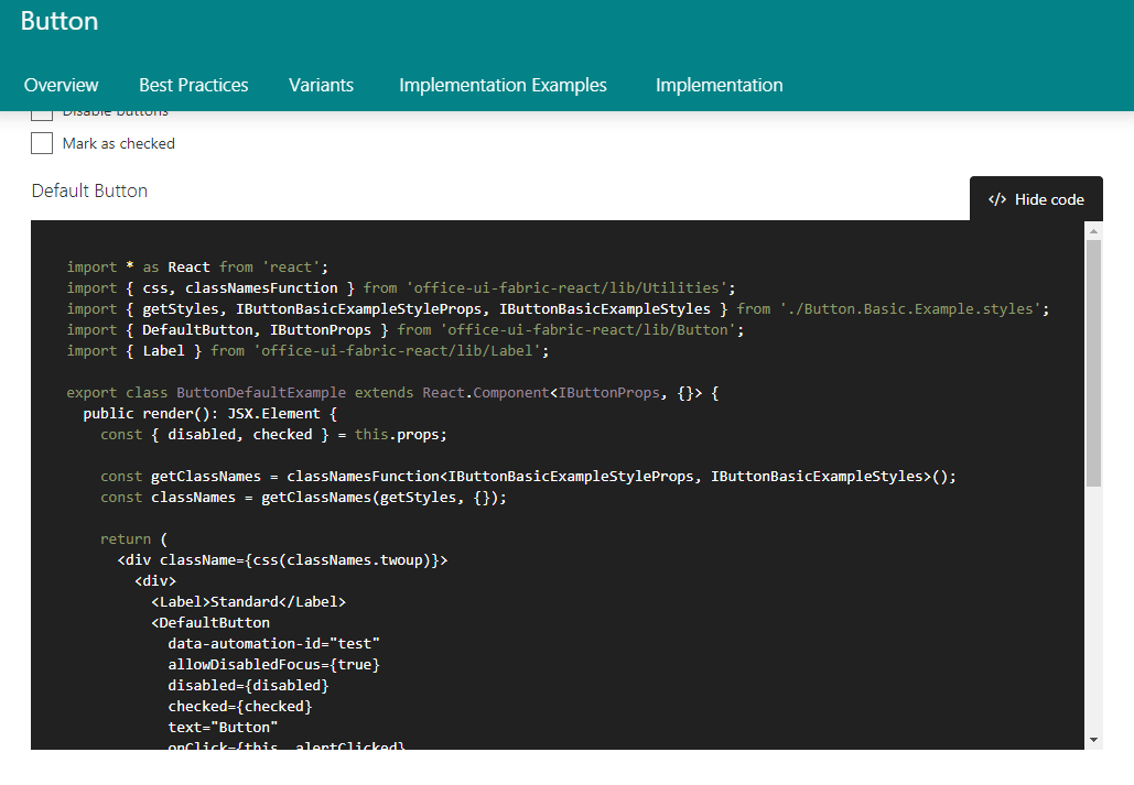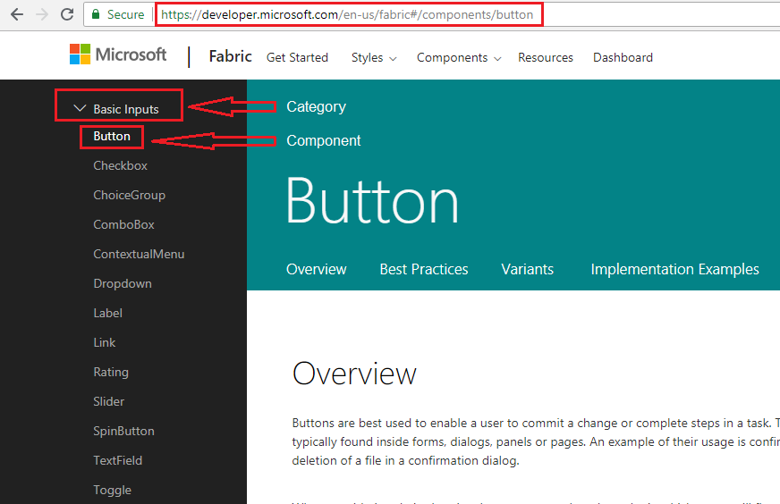 - Navigate to Office UI Fabric Components site at https://developer.microsoft.com/en-us/fabric#/components.