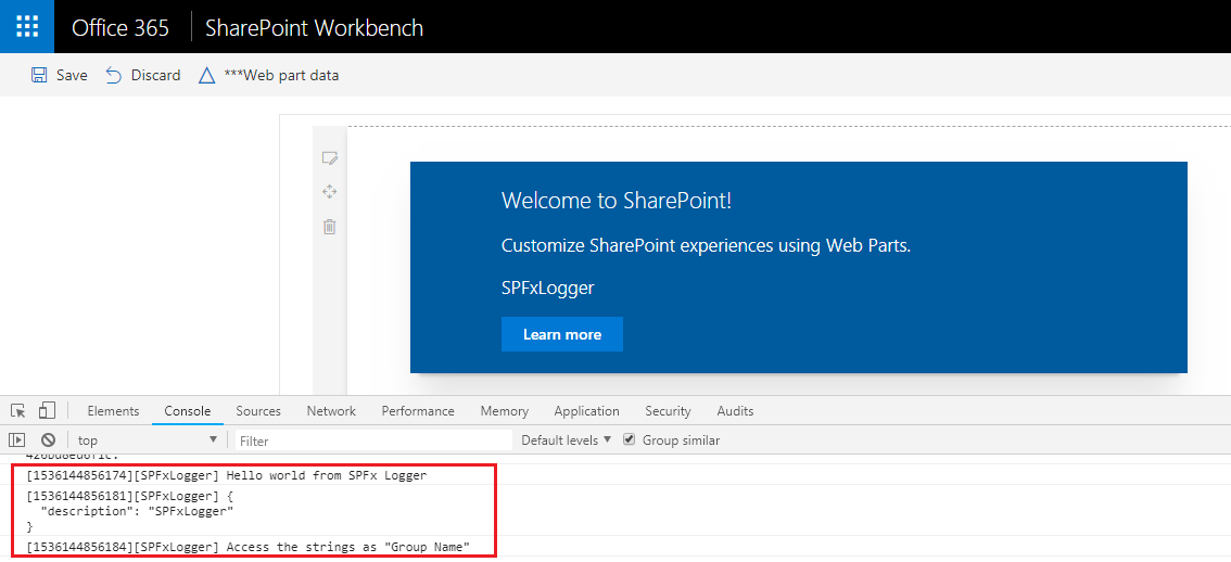 Log.info(LOG_SOURCE, 'Hello world from SPFx Logger');