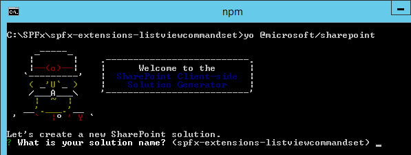 - Solution Name: Hit enter to have default name (spfx-extensions-listviewcommandset in this case) or type in any other name for your solution.