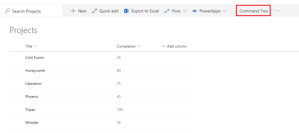 { "$schema": "https://developer.microsoft.com/json-schemas/core-build/serve.schema.json", "port": 4321, "https": true, "serveConfigurations": { "default": { "pageUrl": "https://contoso.sharepoint.com/sites/ModernCommunicationBlank/Lists/Projects/AllItems.aspx", "customActions": { "78c7b88e-c176-4694-b95d-1b371279b6e8": { "location": "ClientSideExtension.ListViewCommandSet.CommandBar", "properties": { "sampleTextOne": "One item is selected in the list", "sampleTextTwo": "This command is always visible." } } } }, "modalDialog": { "pageUrl": "https://contoso.sharepoint.com/sites/ModernCommunicationBlank/Lists/Projects/AllItems.aspx", "customActions": { "78c7b88e-c176-4694-b95d-1b371279b6e8": { "location": "ClientSideExtension.ListViewCommandSet.CommandBar", "properties": { "sampleTextOne": "One item is selected in the list", "sampleTextTwo": "This command is always visible." } } } } } } -