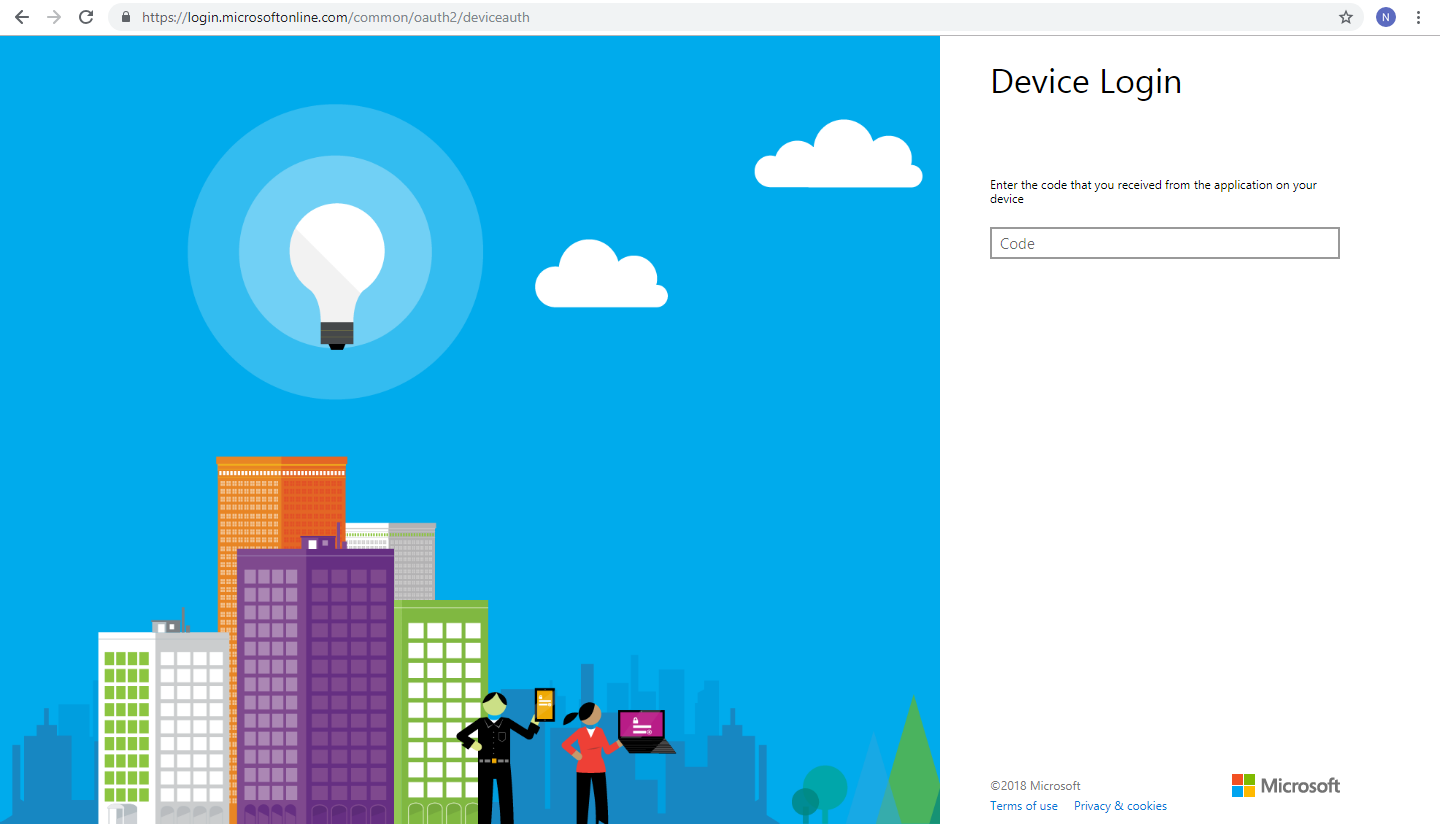 Open url (https://microsoft.com/devicelogin) in the browser.