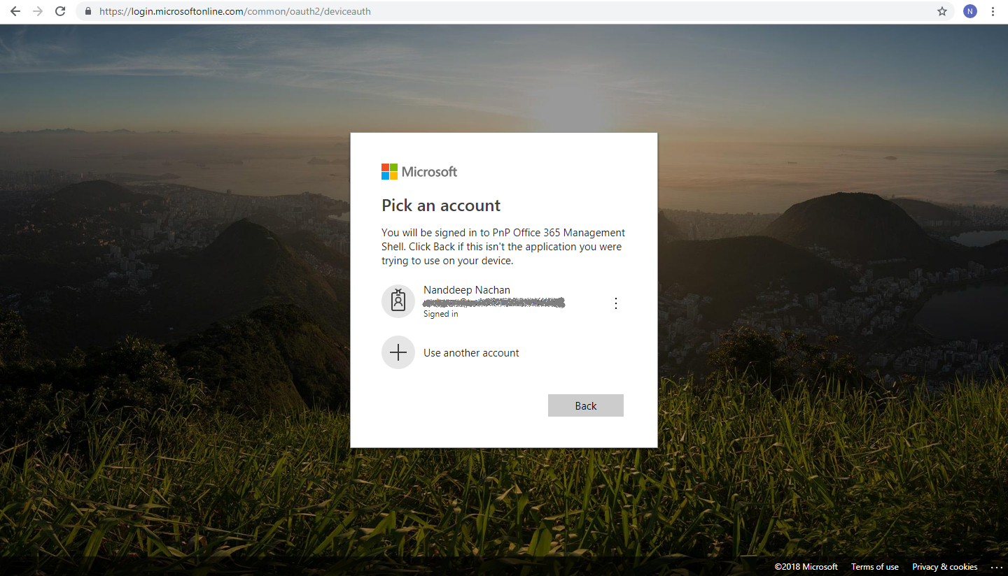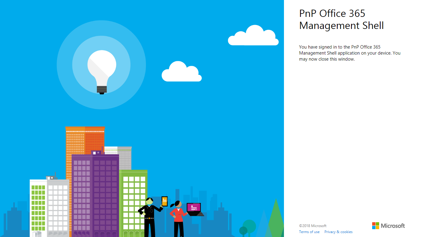 Once the permission is granted, you will be signed in to PnP Office 365 management shell application from your device.