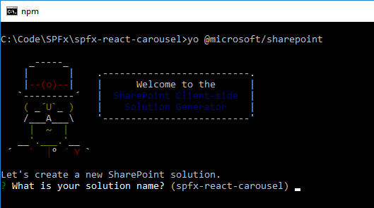 - Solution Name: Hit enter to have default name (spfx-react-carousel in this case) or type in any other name for your solution.