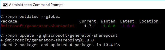 npm update -g @microsoft/generator-sharepoint