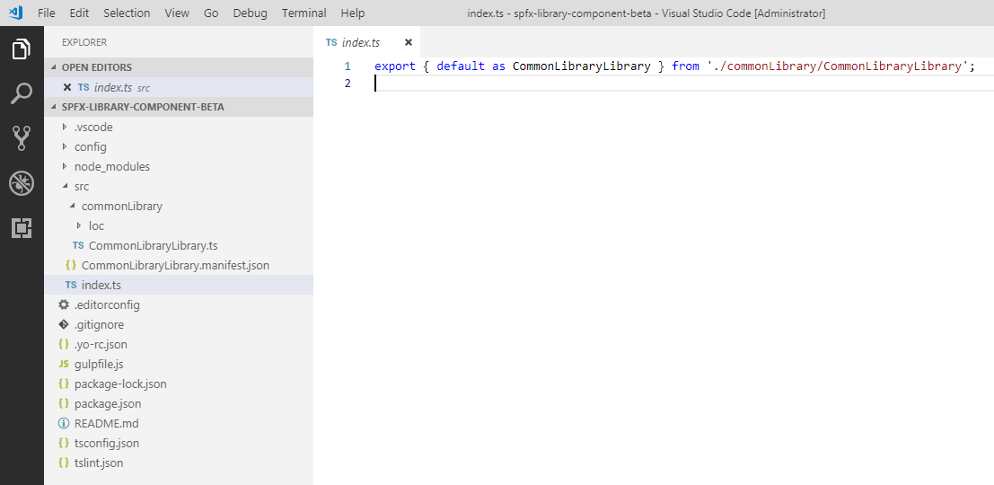 export default class CommonLibraryLibrary { public name(): string { return 'CommonLibraryLibrary'; } public getRandomNumber(): string { // Generate and return random number between 1 to 100 let randomNumber = Math.floor(Math.random() * 100) + 1; return 'Random number returned from the common library is ' + randomNumber; } } - On the command prompt, type gulp to verify the library code compiles without any error.
