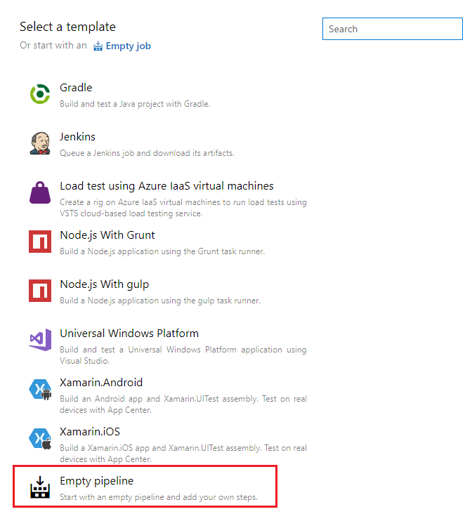 Under Select a template, select Empty Pipeline.