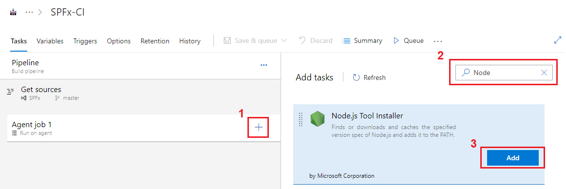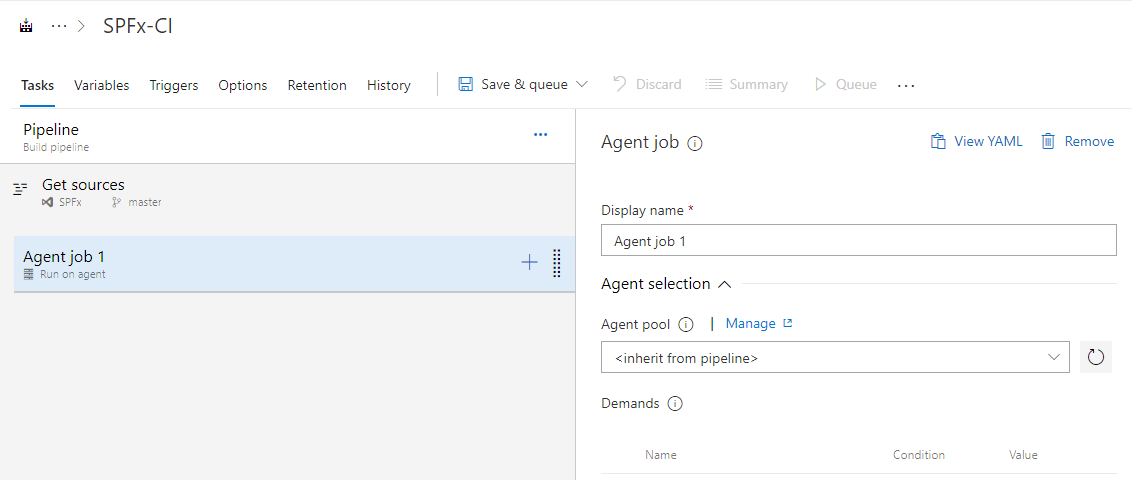 The build definition has default agent. We can add multiple tasks to agent to define our build.
