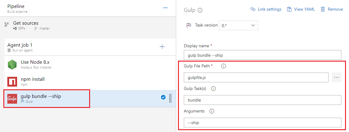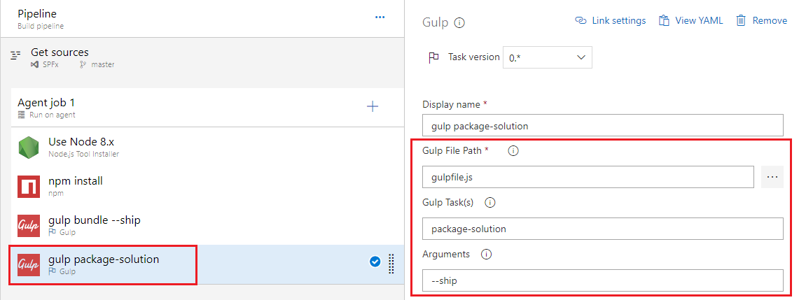 package-solution. - Set Gulp arguments to