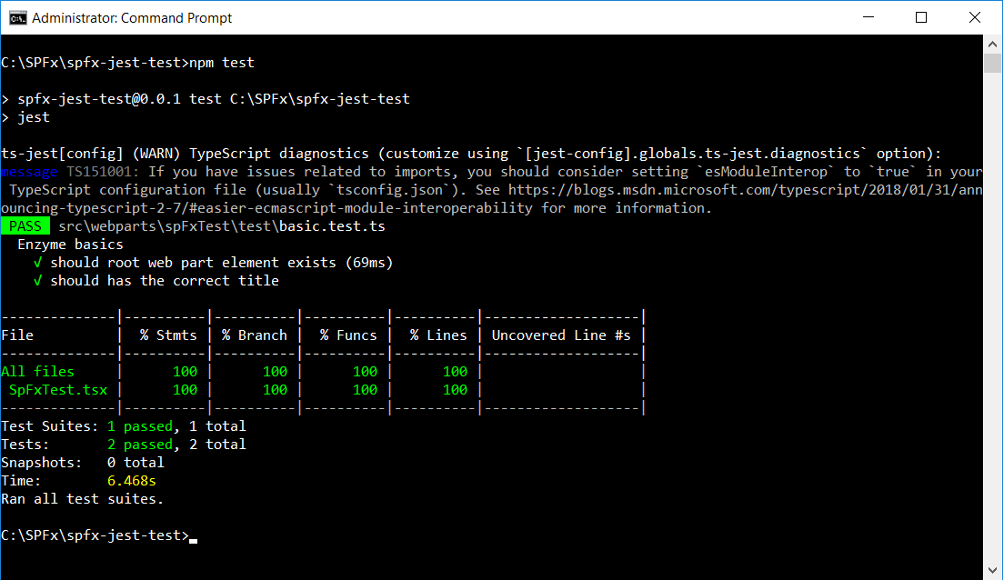 Testing is an important phase of software life cycle. It should be a part of continuous development and deployment to achieve better results. SharePoint framework is no exception to this. As a part of SPFx solution development, we should have supporting test cases to test the functionality independently or as regression testing. Having significant test cases help to develop new functionalities by ensuring the integrity of the existing functionality.