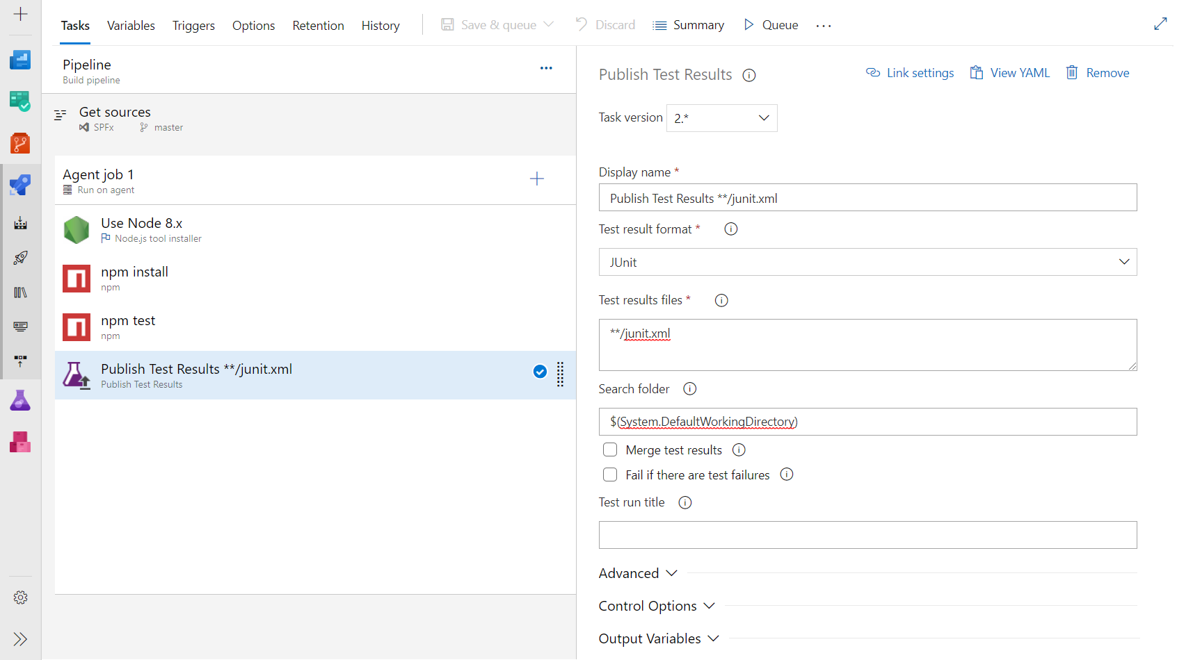 - Add Publish Test Results task.