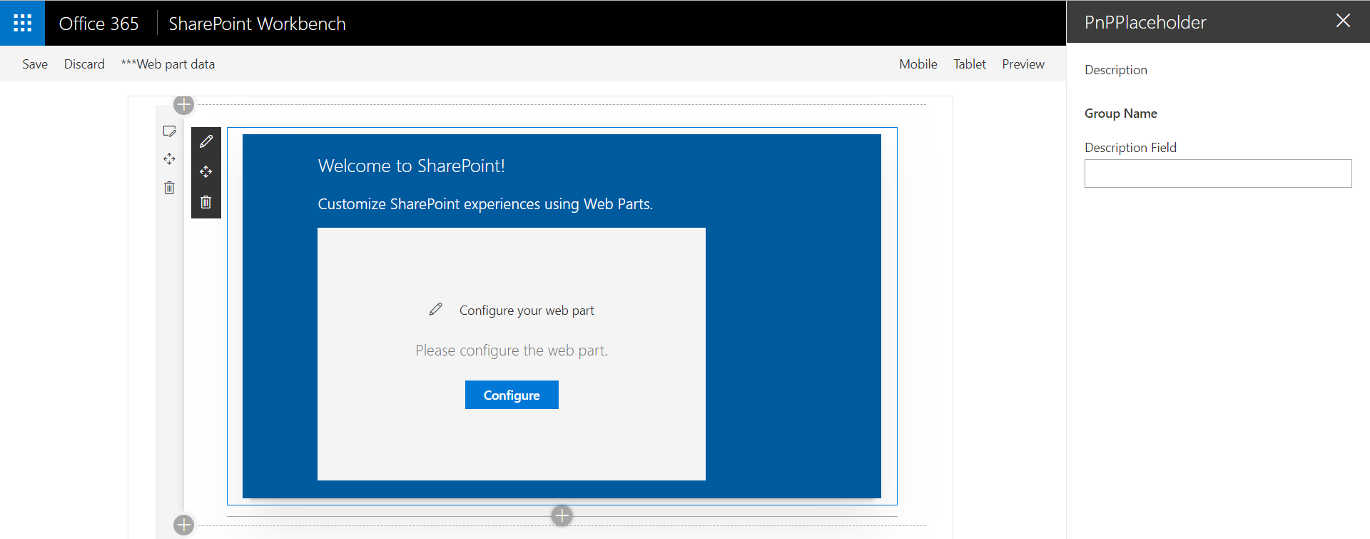 - Navigate to /_layouts/15/workbench.aspx