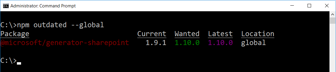 On the command prompt, execute the below command to list out the outdated npm packages.