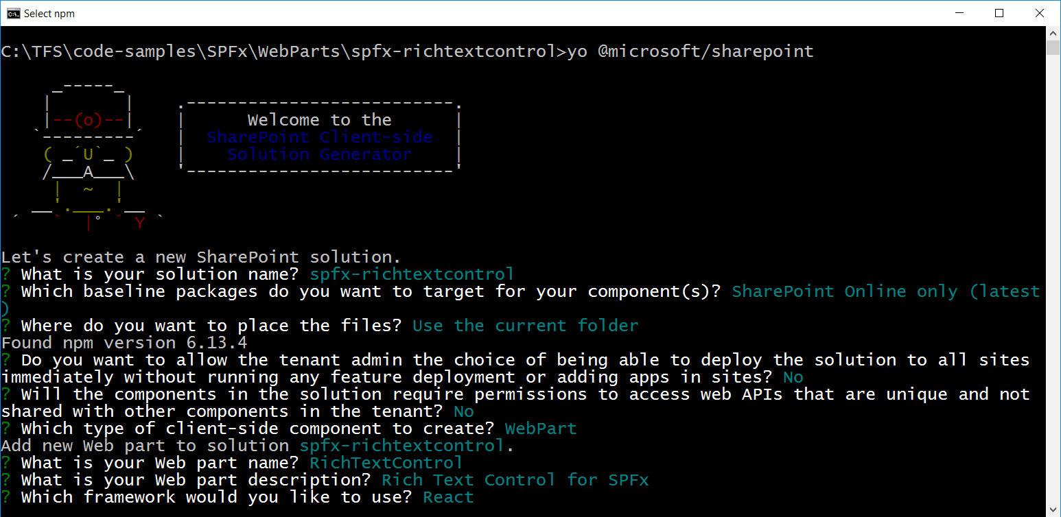 yo @microsoft/sharepoint -