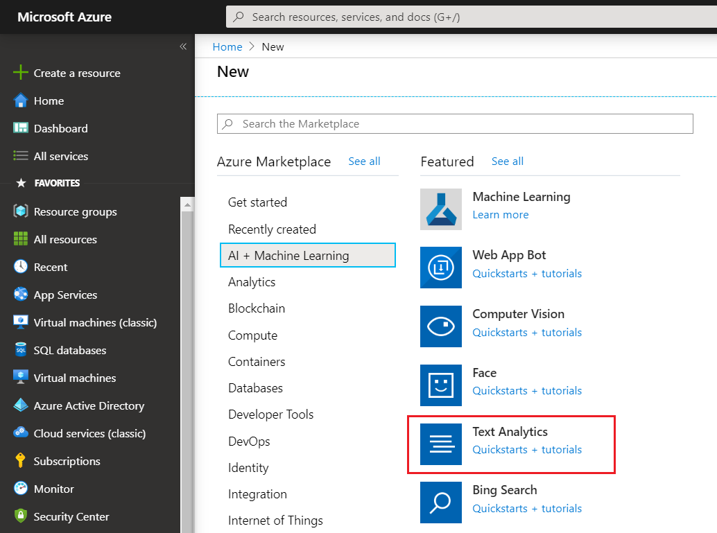 Let us start by building our first building block in MS Azure Cognitive Services by creating Sentiment Analysis API. Follow the below steps to set up Sentiment Analysis API.