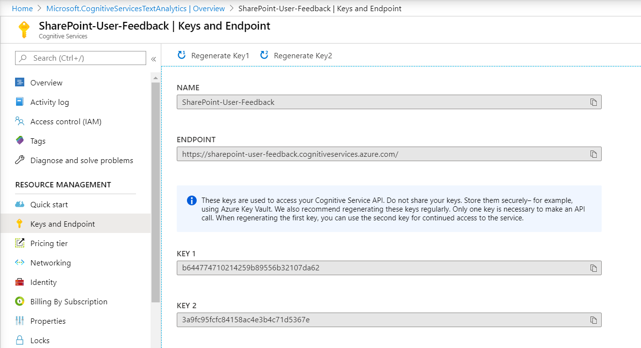 - Note down the API Key and endpoint to authenticate your applications and start sending calls to the service.