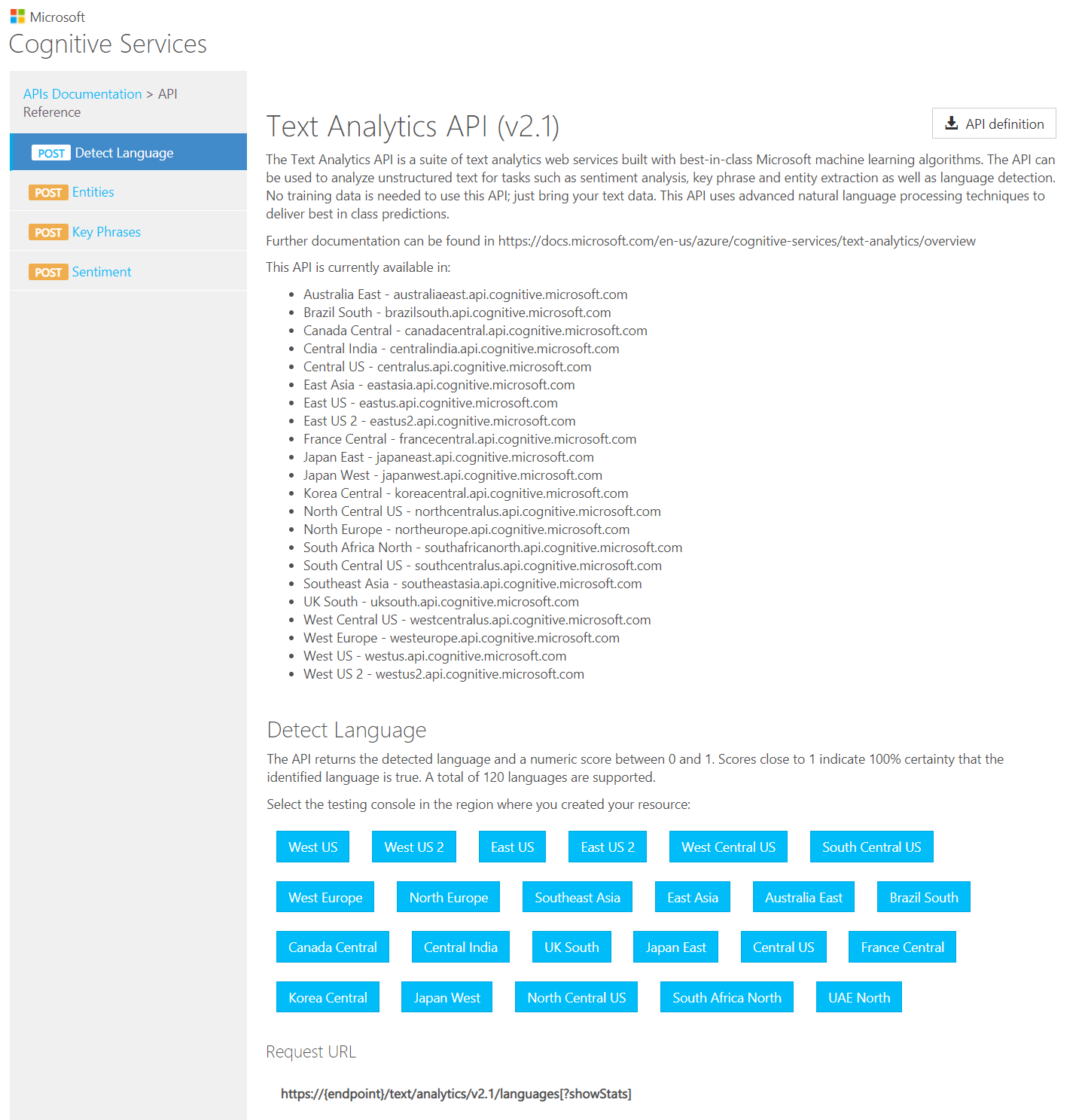 - Pricing tier: Select tier as per features you want to use. More details at https://azure.microsoft.com/en-us/pricing/details/cognitive-services/text-analytics/