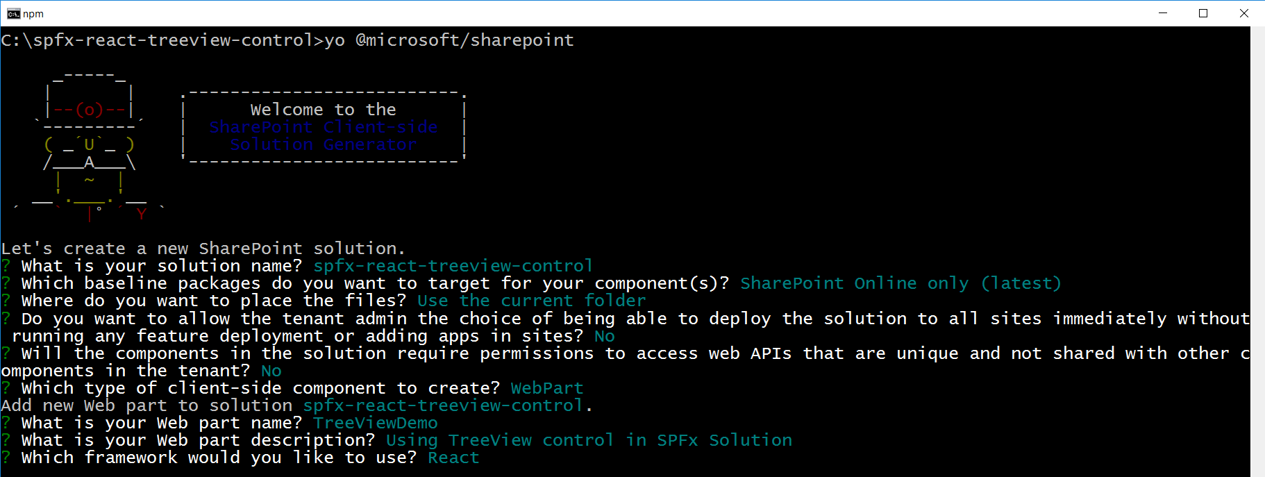 yo @microsoft/sharepoint -
