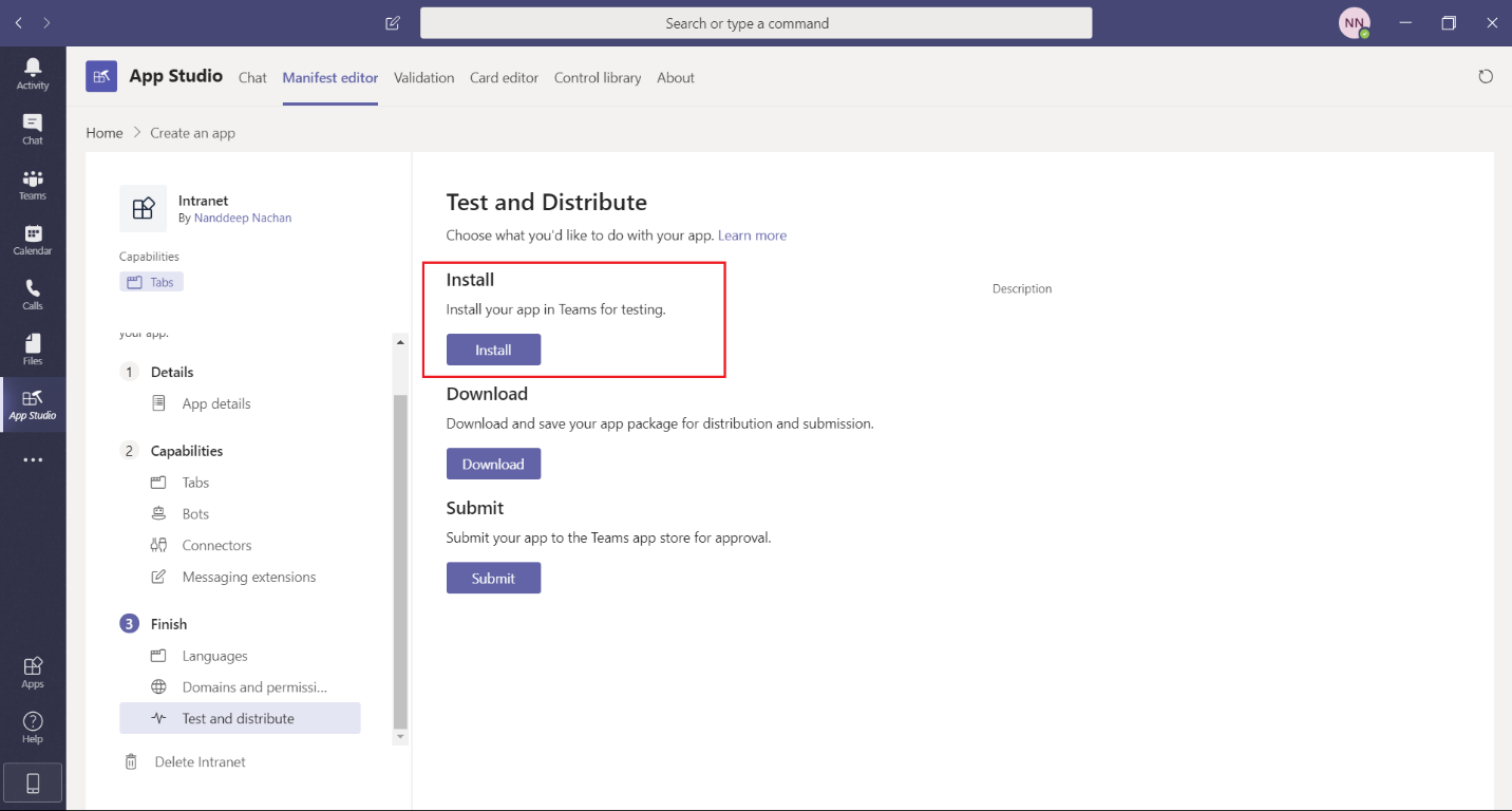 - Under Finish, click Test and distribute. Make sure no errors are displayed.