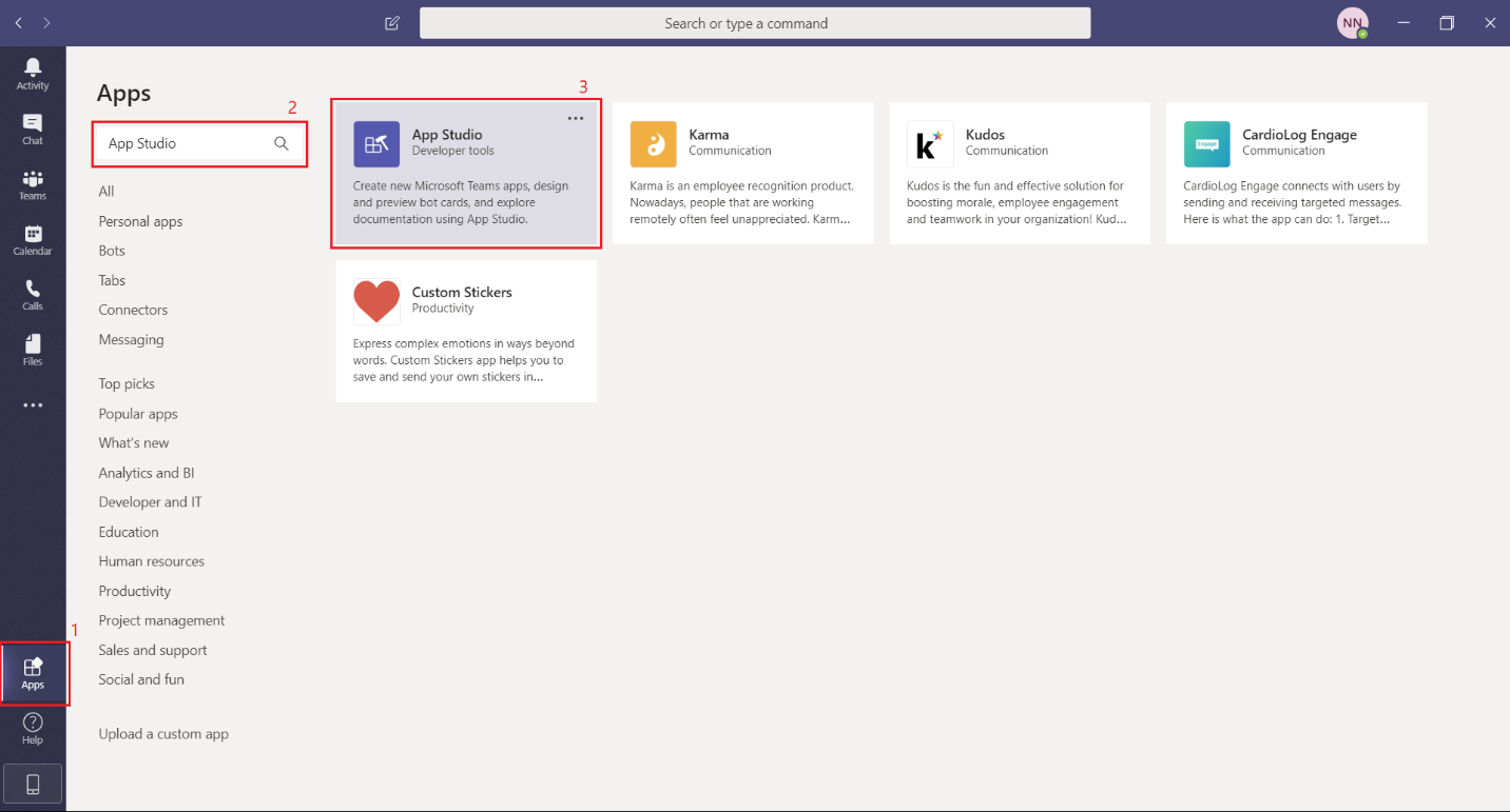 In the Teams desktop client, navigate to the ellipses (…) on the left-hand side of your app bar. Find your new app and load it.