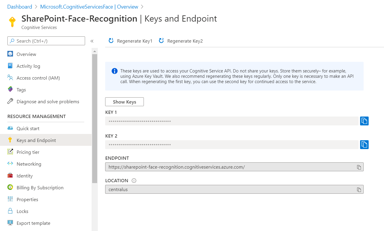 - Note down the API Key and endpoint to authenticate your applications and start sending calls to the service.