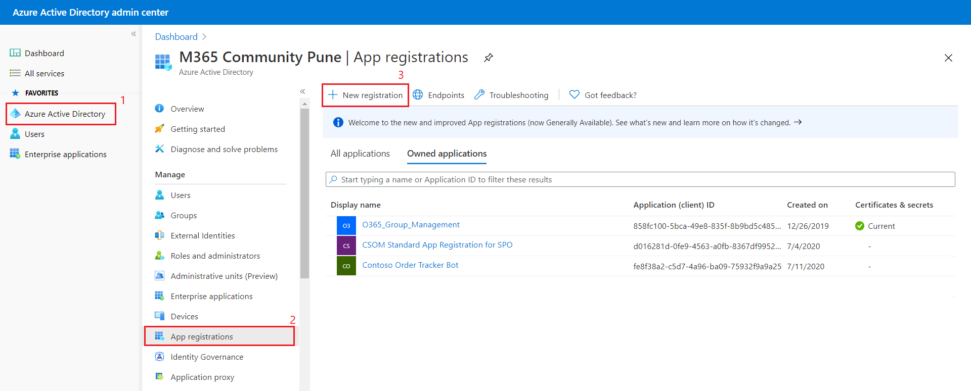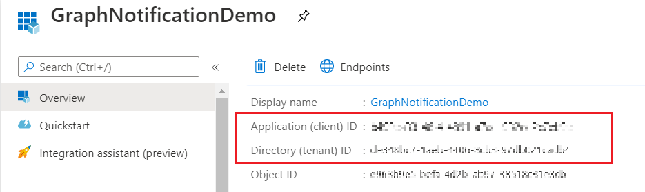 Note down the Application (client) ID and Directory (tenant) ID for later use.
