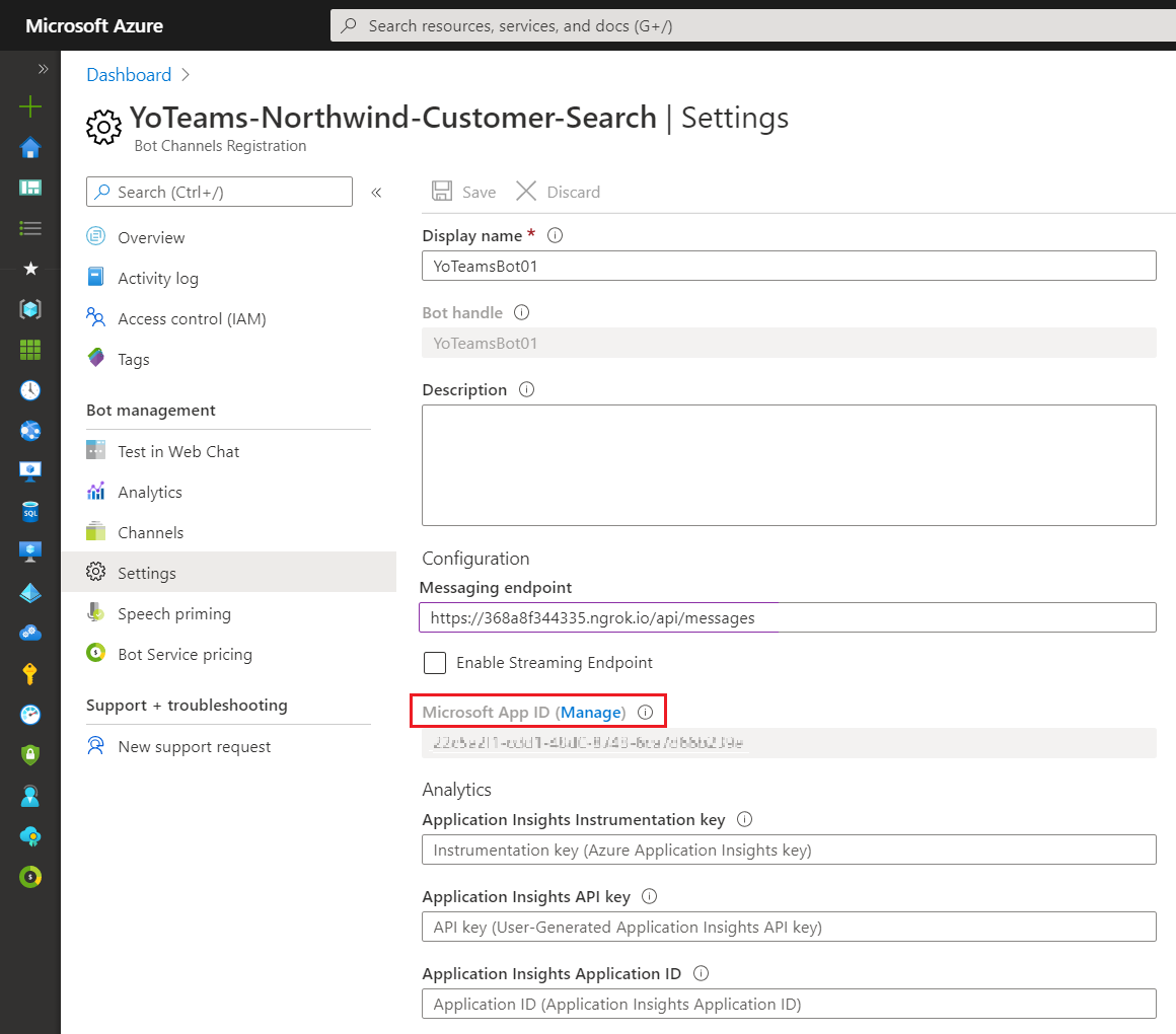 Firstly, we need to register Bot in Azure to get the App Id and secret and configure the endpoint URL.