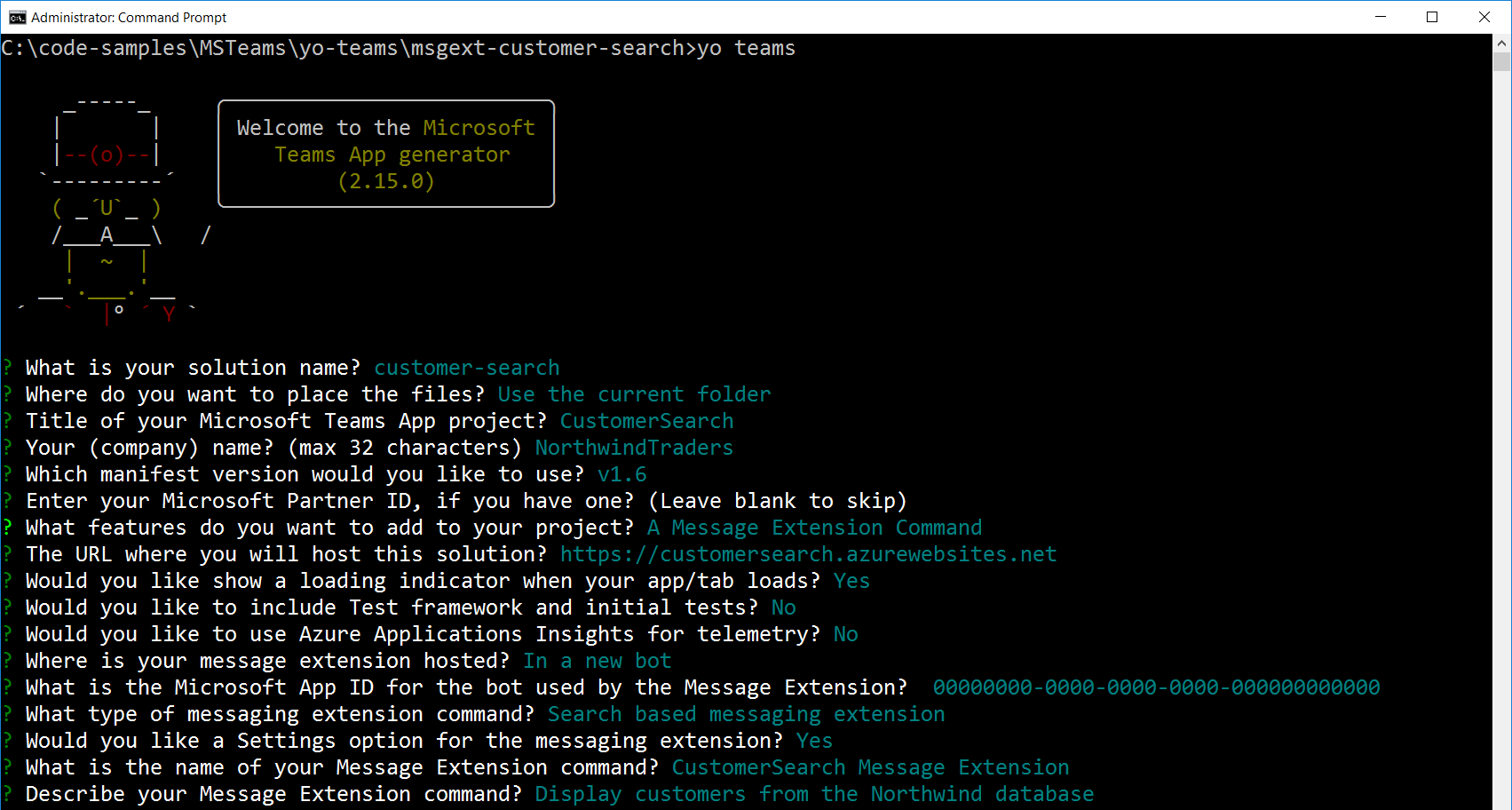 Implementing Search Messaging Extensions for MS Teams with Yo Teams