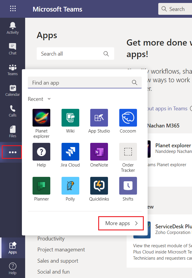 Using the app bar navigation menu, select the More added apps button. Then select More apps.
