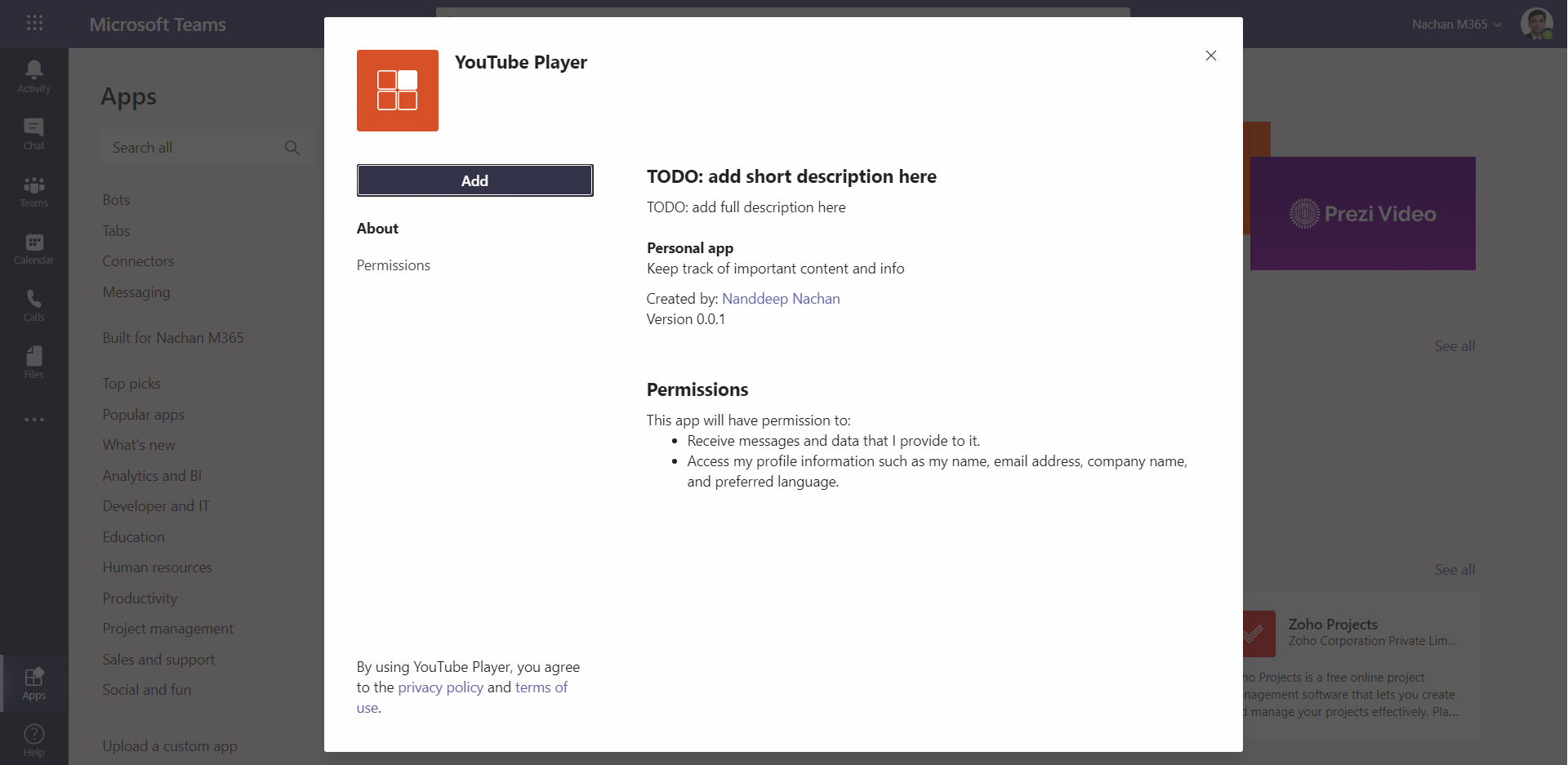 The code developed during this article can be found at: https://github.com/nanddeepn/code-samples/tree/master/MSTeams/task-modules-tab/YouTubePlayer_AdaptiveCards