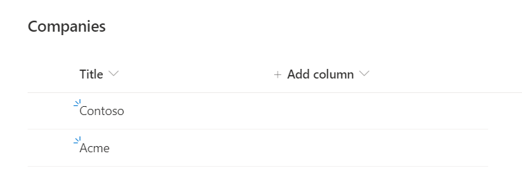 A list to store company information. For simplicity, we will use only one OOB column - Title.