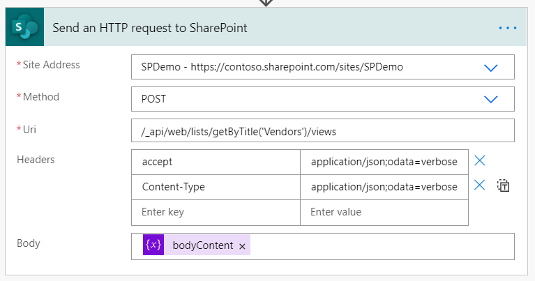 Add an action Send an HTTP request to SharePoint to call the REST API to create a view.
