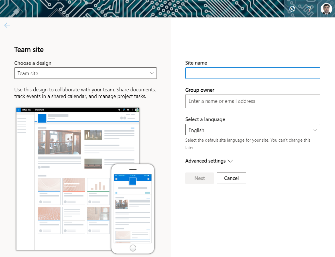 The modern SharePoint online admin center gives an easy option to create new site collections.