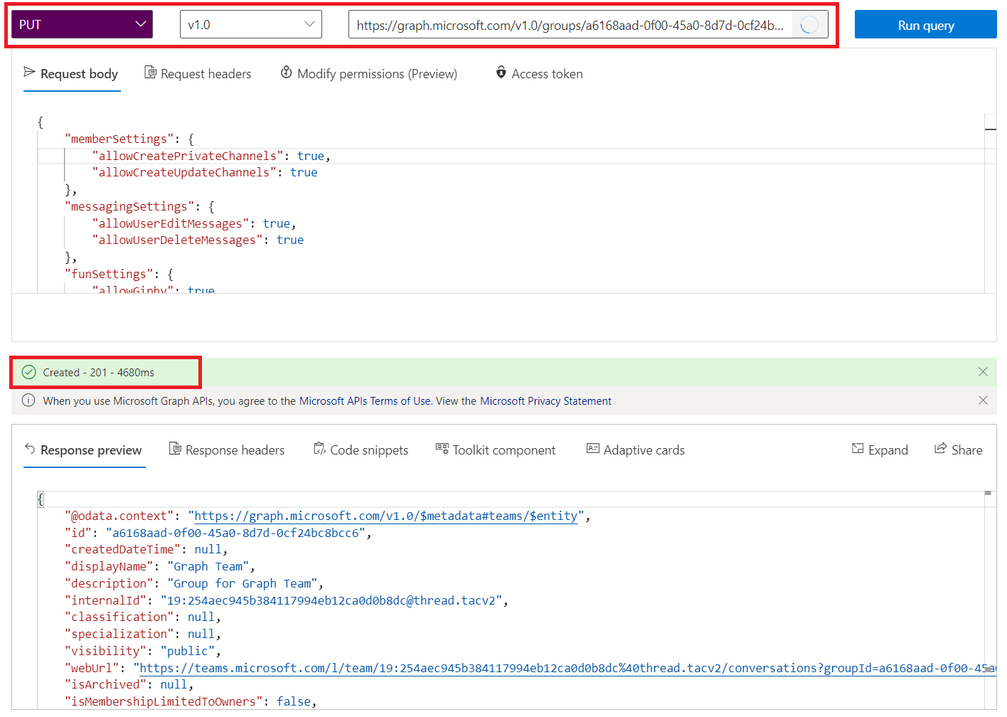 Create MS Teams Team with Graph Explorer