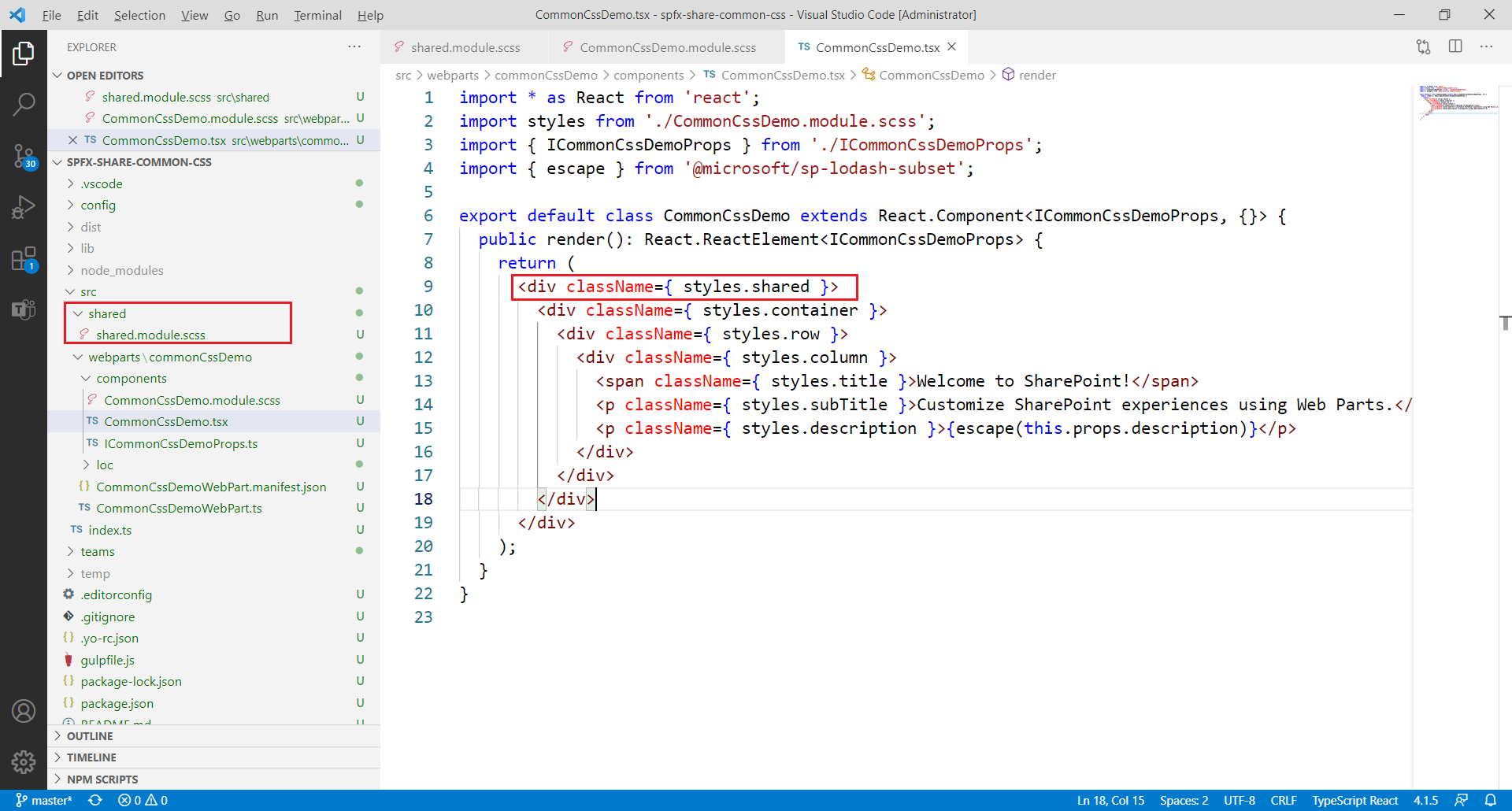 Update the web part’s render method to use the shared css class.