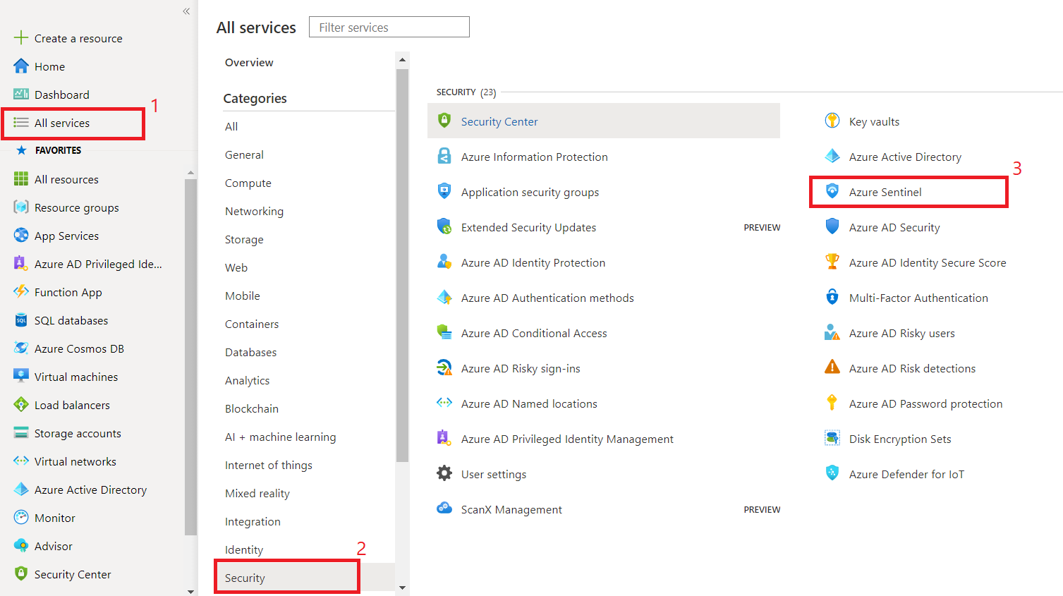 Under Security, click Azure Sentinel.