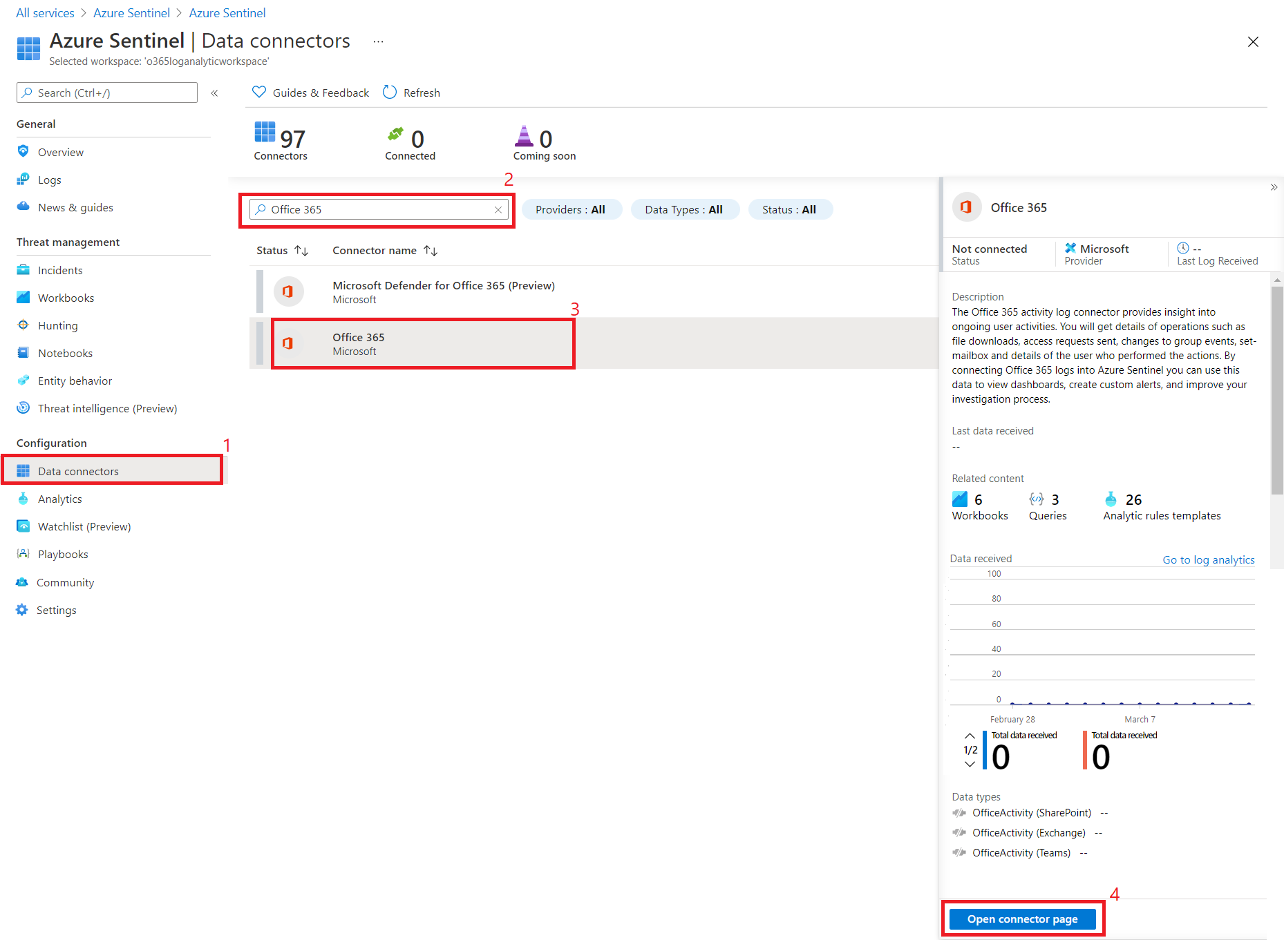 Monitor Office 365 Logs from Azure Sentinel