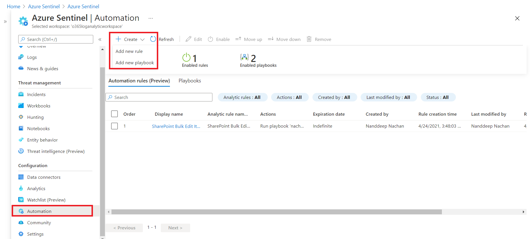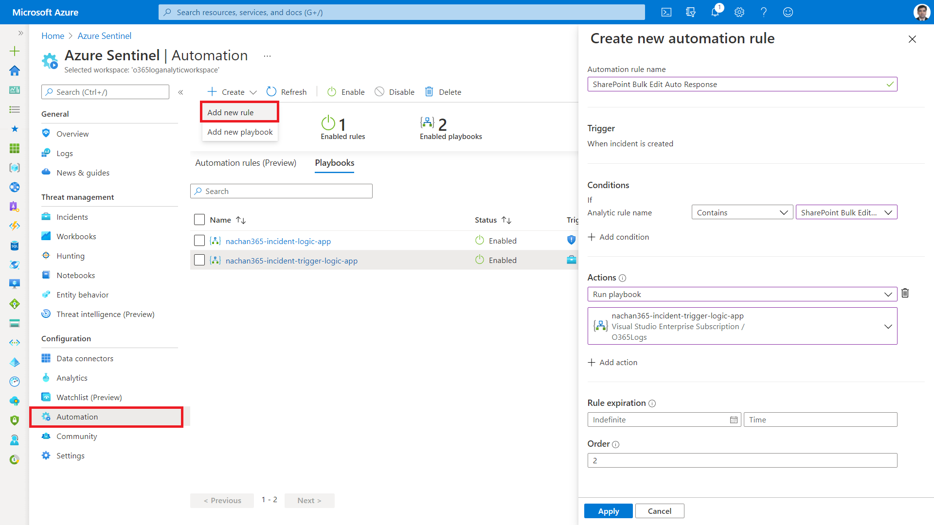 Detecting the threats and respond to it in a timely manner is very crucial in the Office 365 environments. We can use playbooks together with automation rules to automate incident response and remediate security threats detected by Azure Sentinel.