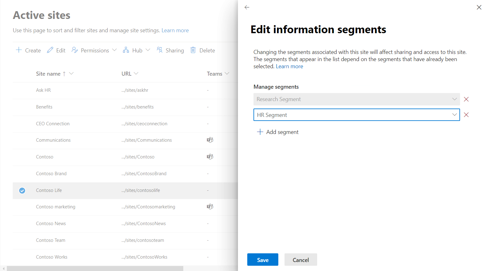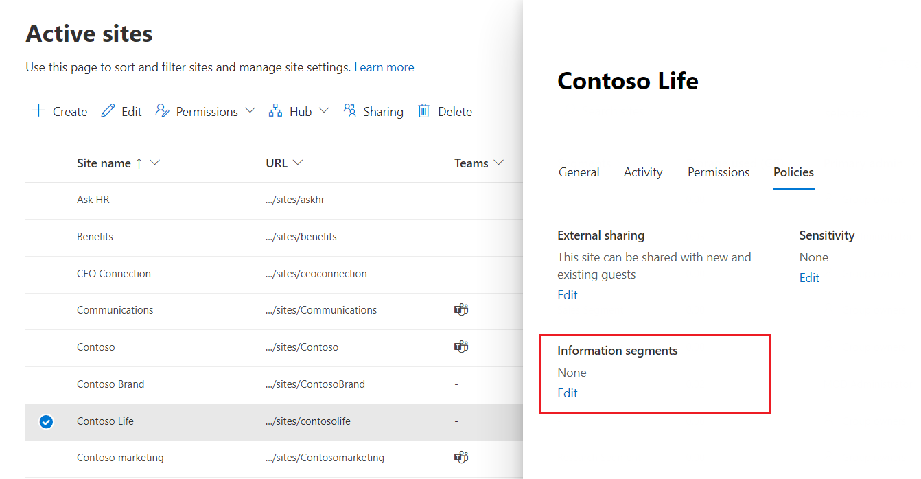 - SharePoint admins can’t change the segments associated with a site when the site is connected to a team.
