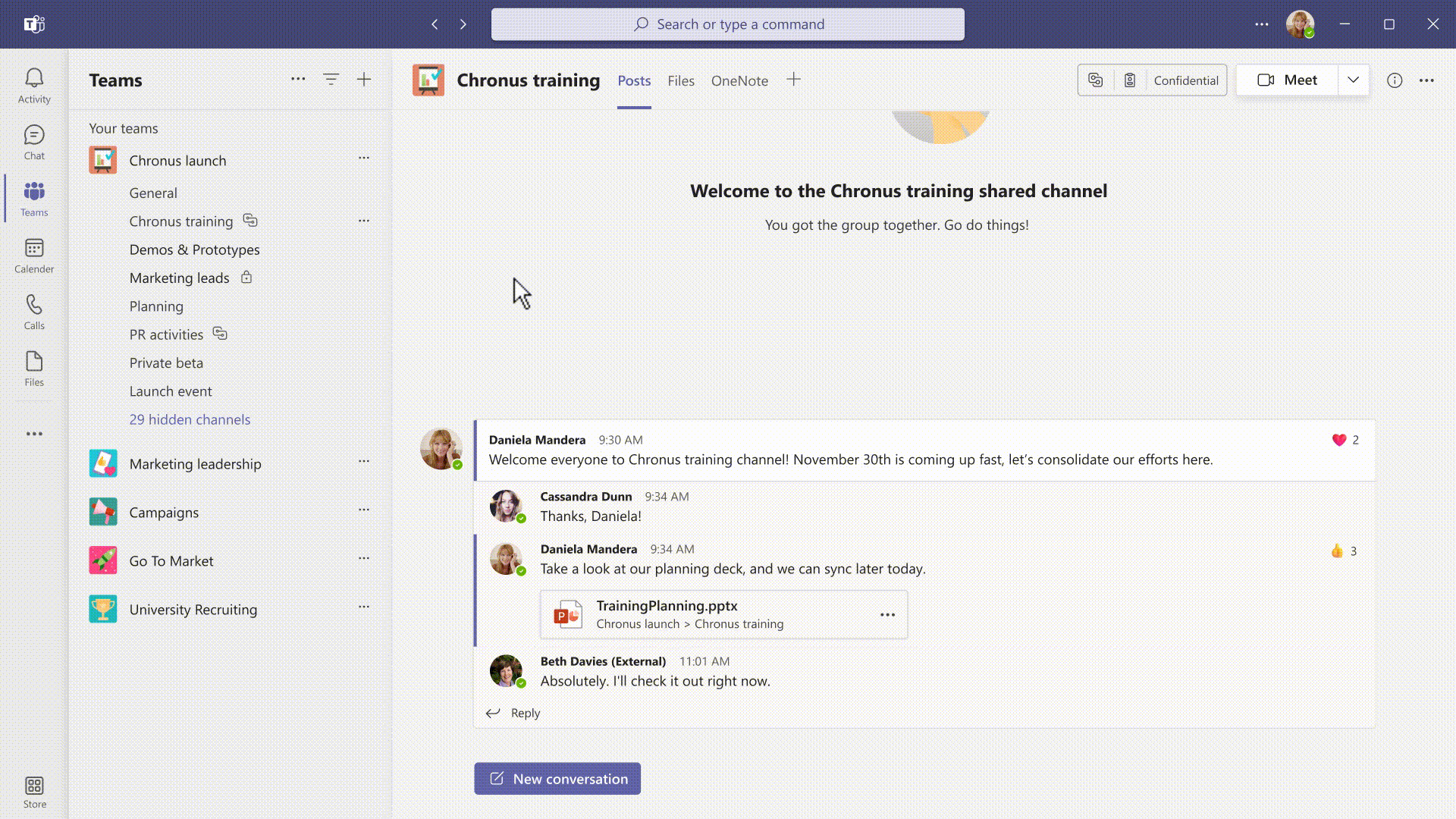 Azure AD is now going beyond just maintaining your organization users to support one extended teams across multiple companies. External shared channels are shown along side other channels in one single view. Sign up for Microsoft Teams connect.