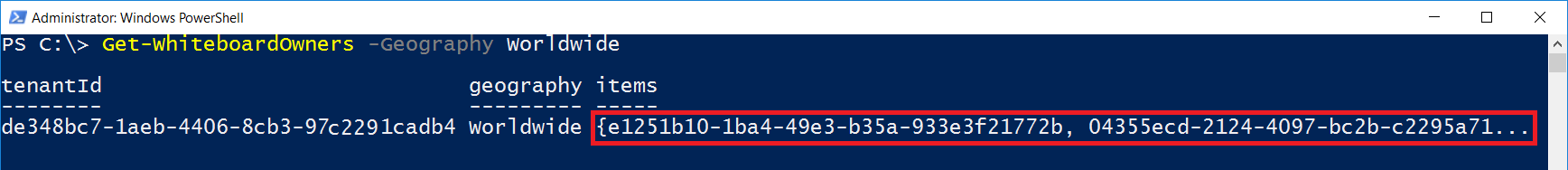 Write-Host "Found $($geographyOwners.items.Count) Whiteboard owners."