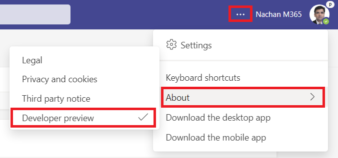 - Click … > About > Developer preview.