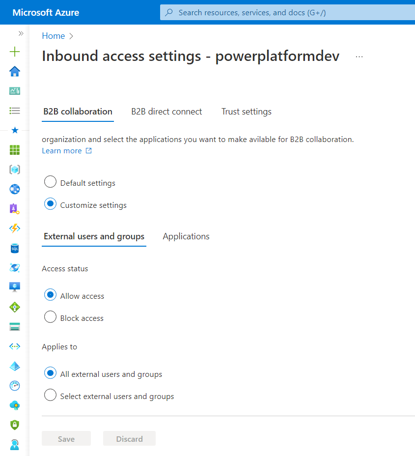 The same settings also need to be enabled on the partner side. Ask the partner tenant admin to perform the below steps to enable the B2B collaboration: