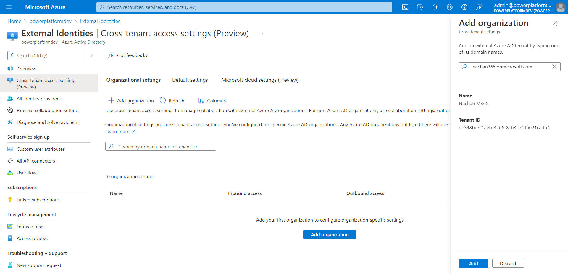 - Under Organization settings, click + Add organization.