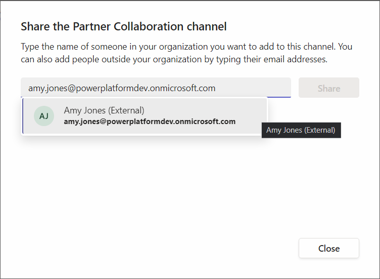 Once the channel is created, you can share the channel with external users.